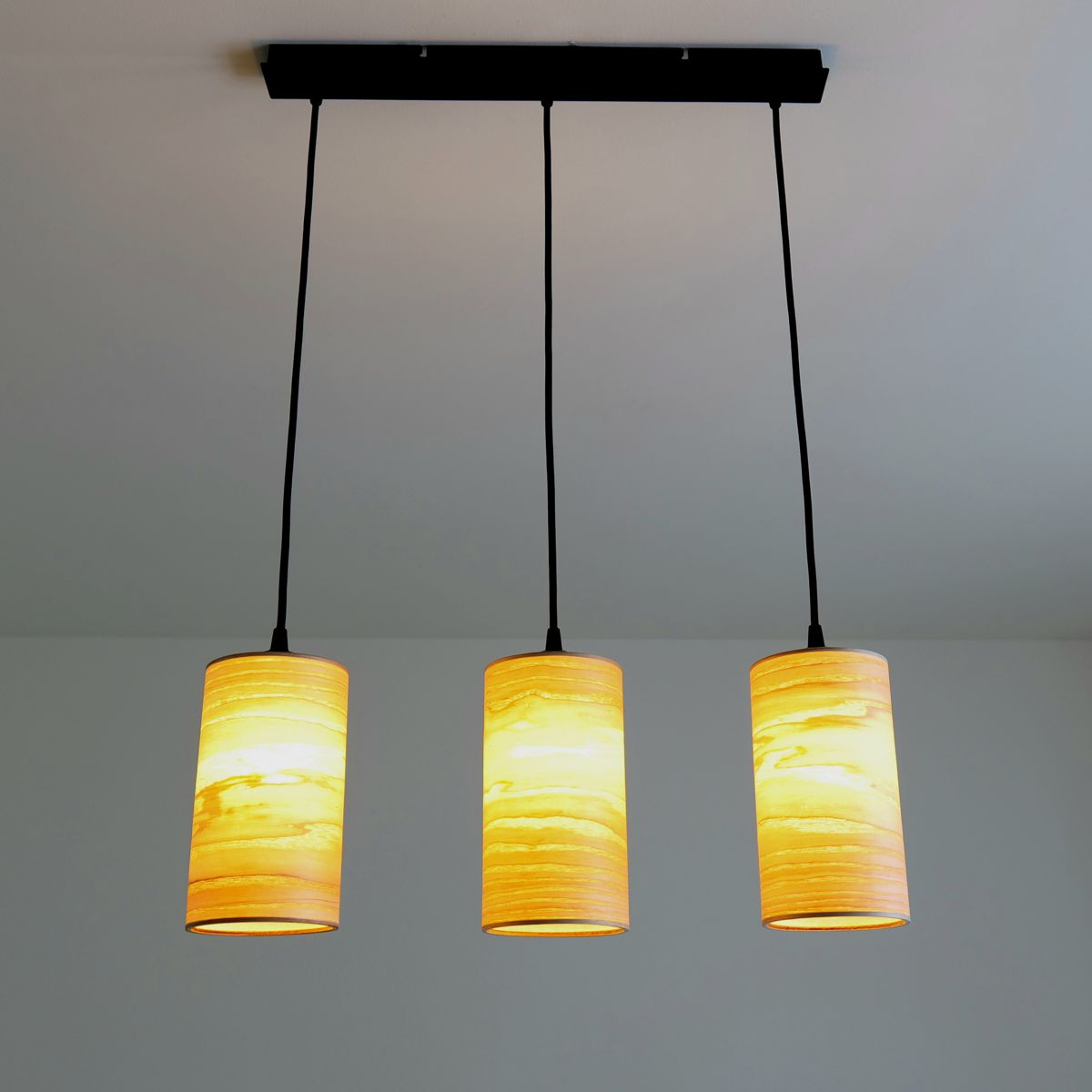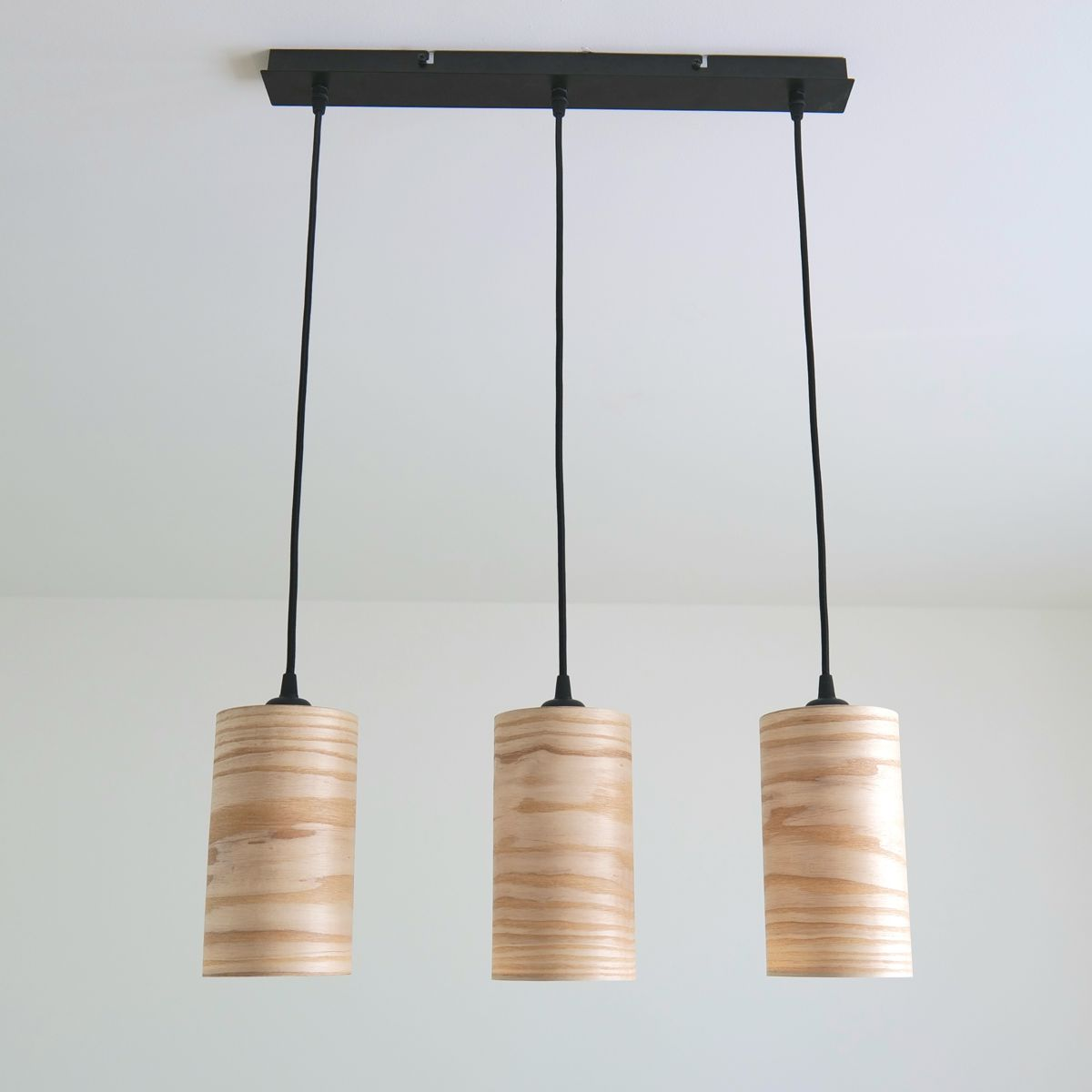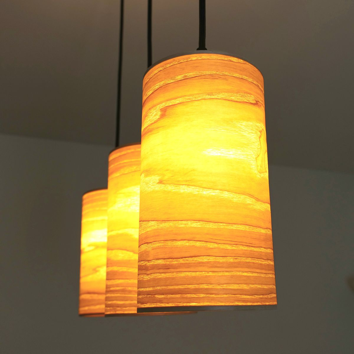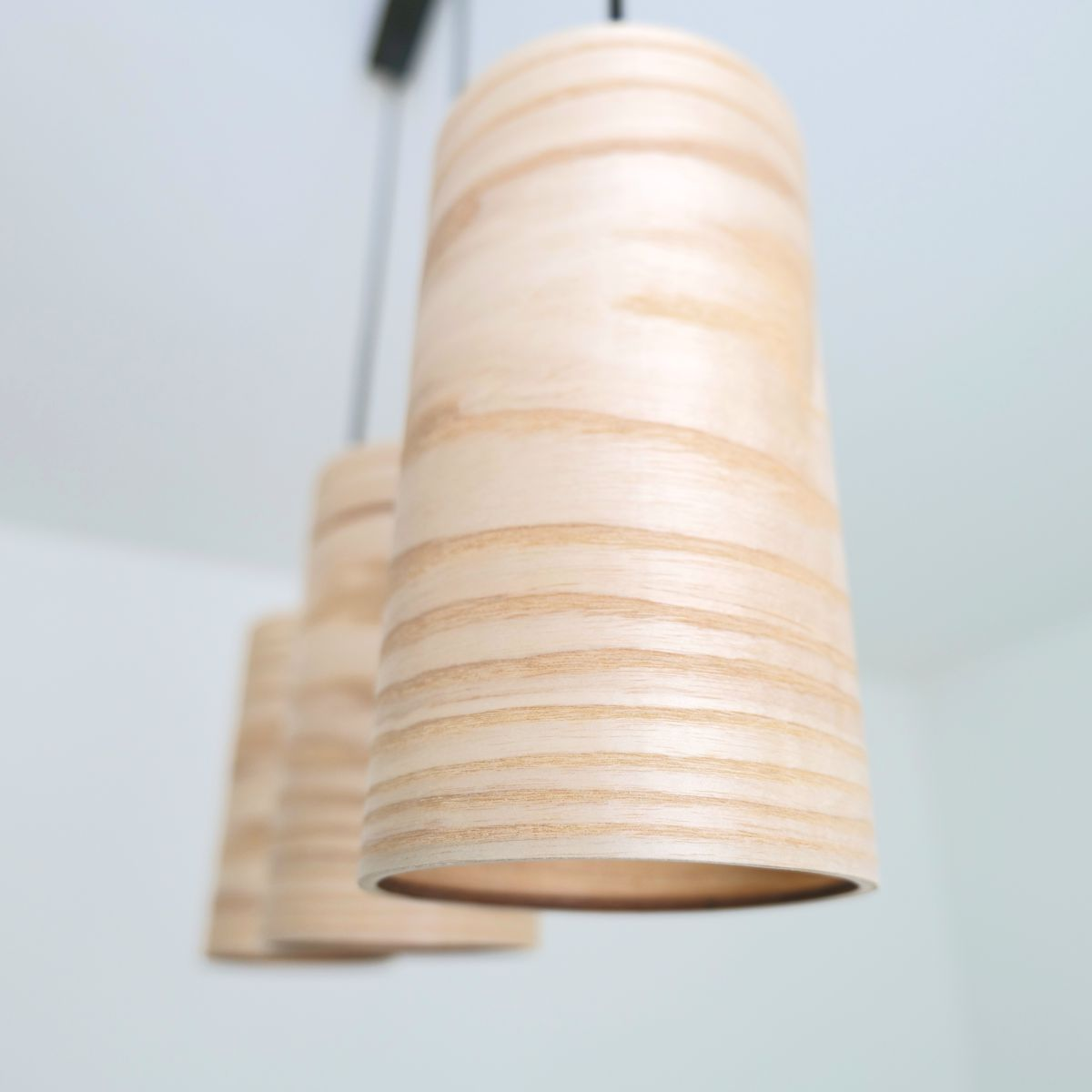 Luma Light ist eine exklusive Deckenleuchte mit drei hängenden Lampenschirmen aus hellem Eschefurnier. Das sanfte, luftige Licht strahlt Ruhe und Leichtigkeit aus – perfekt für moderne, entspannte Räume mit natürlicher Eleganz.