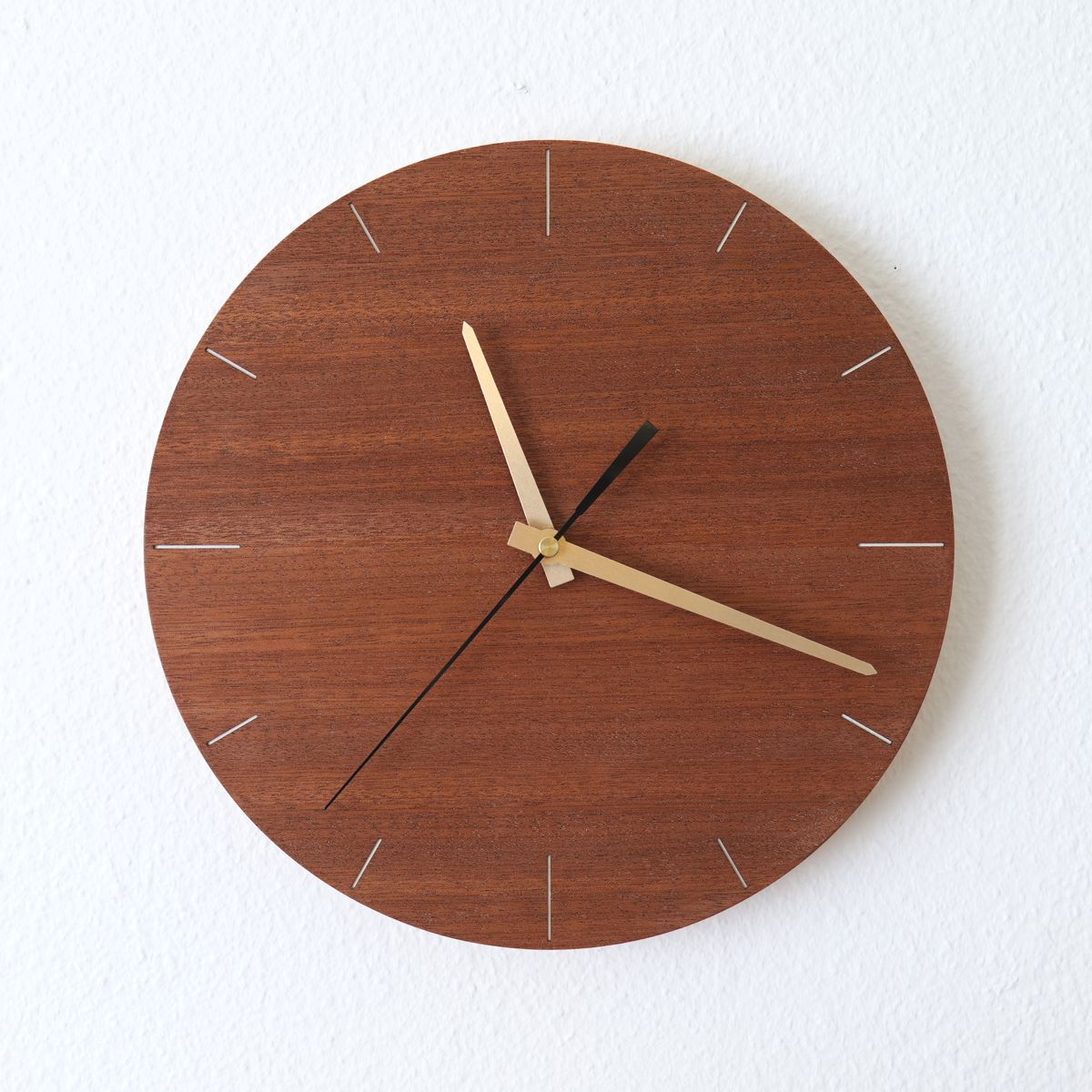 Handgefertigt aus dunklem Sepale-Furnier, minimalistisches Design mit feinen Strichen. Die Zeiger sind wahlweise schwarz oder gold und setzen subtile Akzente. Schafft eine warme, elegante Atmosphäre.